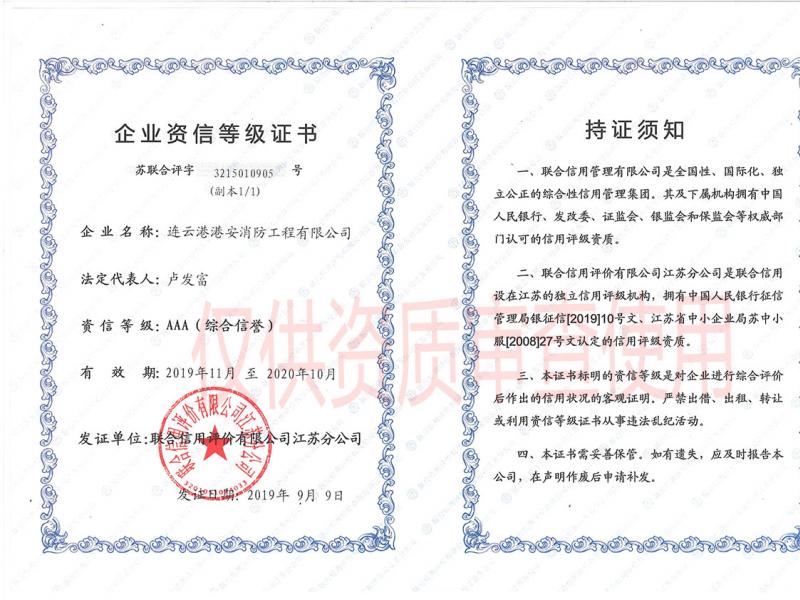 企業“AAA”資信等級(jí)證書(shū)