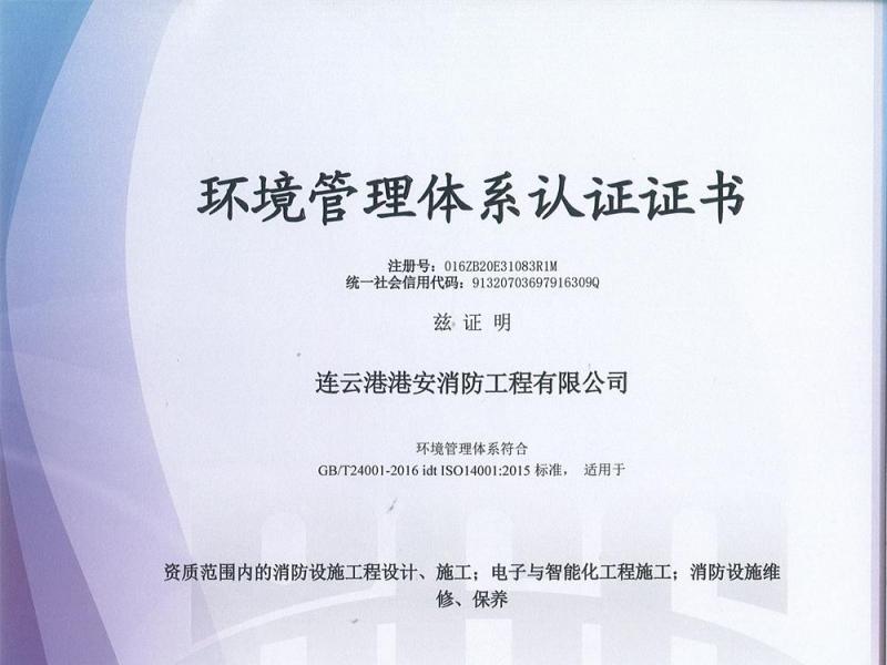 環境管理體系認證證書.