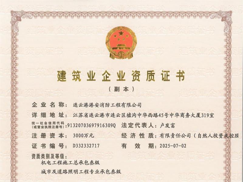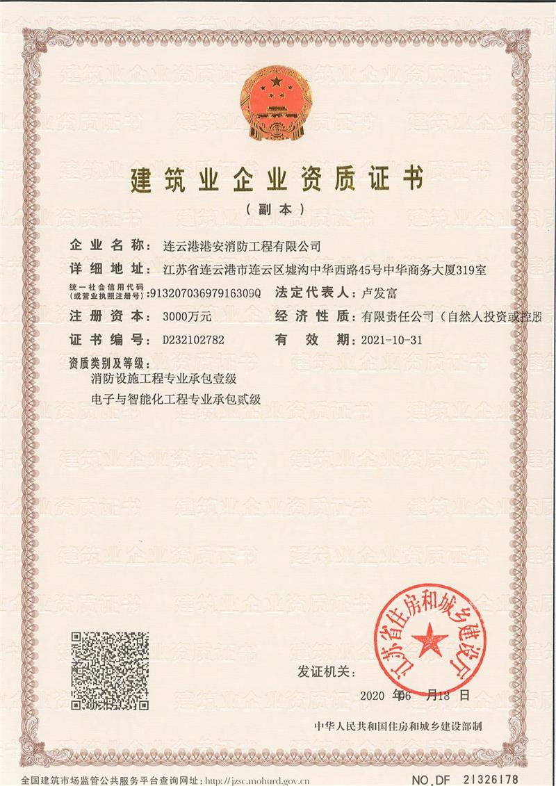 資質證書-消防壹級、智